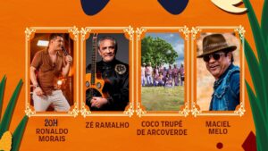 Após a grande celebração popular pelas ruas da cidade, a programação noturna deu continuidade ao clima festivo no Polo Multicultural. A abertura dos shows ficou por conta de Geraldinho Lins, que embalou o público com clássicos do forró, seguido pela apresentação vibrante do grupo Coco Fulô do Barro, que trouxe ao palco a força das tradições populares nordestinas.