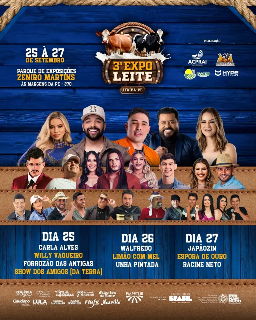 Itaíba está prestes a se transformar no centro das atenções do calendário agropecuário de Pernambuco, pois entre os dias 25 e 27 de setembro acontece a tão aguardada 3ª Edição da Expo Leite, consolidada como a maior Festa do Leite da região. O Parque de Exposição Zeniro Martins será o palco principal das atividades, reunindo produtores, criadores e amantes da cultura leiteira em um fim de semana que promete movimentar a economia e a cultura local.