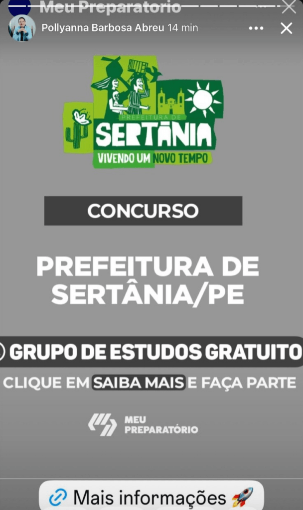 Além disso, Pollyanna Abreu também divulgou, por meio das redes sociais, informações sobre a oferta de grupos de estudos gratuitos voltados para a preparação de candidatos ao concurso municipal. A ação é realizada pela instituição Meu Preparatório e tem como foco ampliar o acesso ao conteúdo educacional e apoiar estudantes e concurseiros da cidade.