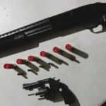 A abordagem foi imediata porque os agentes suspeitaram da atitude dos indivíduos. Ao revistarem o grupo, encontraram, em uma sacola carregada pelo homem, uma espingarda calibre 12, modelo escopeta de repetição, municiada com seis cartuchos. Além disso, com o adolescente foi apreendido um revólver calibre .32, também carregado com seis munições.
