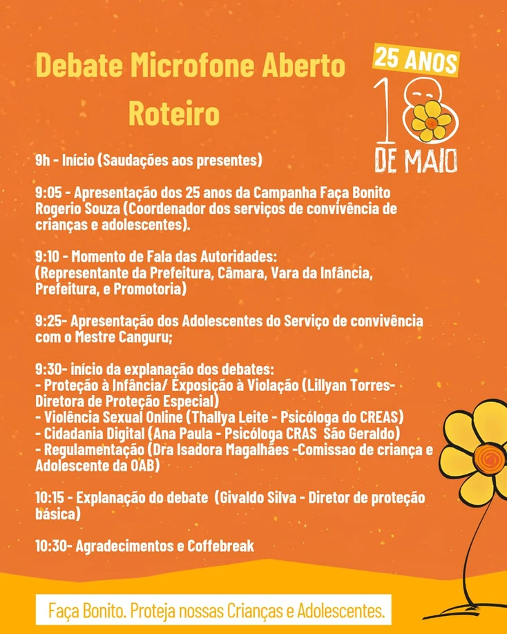 Embora o foco da campanha esteja voltado para a proteção contra violências. O evento de hoje amplia o debate, pois aborda também a segurança digital, especialmente no ambiente virtual frequentado por crianças e jovens. O tema escolhido por Arcoverde para este ano, “Proteger a Infância é um Compromisso de Todos”, reforça a responsabilidade coletiva na prevenção desses crimes.