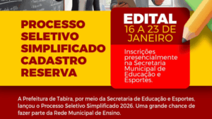 Leia também: Prefeitura de Tabira abre Processo Seletivo para a Rede Municipal de Ensino