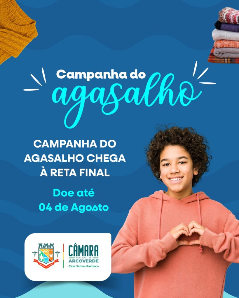 A Campanha do Agasalho promovida pela Câmara de Vereadores de Arcoverde caminha para sua reta final, com encerramento previsto para a próxima segunda-feira, dia 4 de agosto. Desde seu lançamento oficial, em 14 de julho, a iniciativa tem mobilizado a população local em torno de um gesto solidário: aquecer o inverno de quem mais precisa.