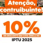 Portanto, quem deseja economizar e colaborar com o desenvolvimento da cidade deve ficar atento: o desconto de 10% é válido somente para o pagamento em cota única, com vencimento até 31 de maio de 2025. Não perca essa oportunidade!