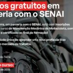 A Fundação Terra está com inscrições abertas para o curso gratuito de Manutenção Mecânica de Motos, oferecido em parceria com o Senai. Com vagas limitadas, a capacitação será realizada em dois turnos — tarde e noite — permitindo maior flexibilidade para os interessados.