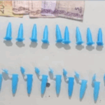 O abordado afirmou residir na residência e disse que o outro homem era apenas um amigo, mas negou possuir drogas, embora tenha autorizado a entrada da equipe. Durante a vistoria, foram encontrados diversos sacos plásticos utilizados para acondicionar cocaína. Assim como, um pino cheio sobre o rack da TV, dez pinos vazios escondidos sob um bocal de lâmpada. Além de 11 pinos cheios de entorpecente encontrados em uma tomada próxima ao sofá. Também foram apreendidos dinheiro trocado e um papel com anotações referentes à venda das drogas.