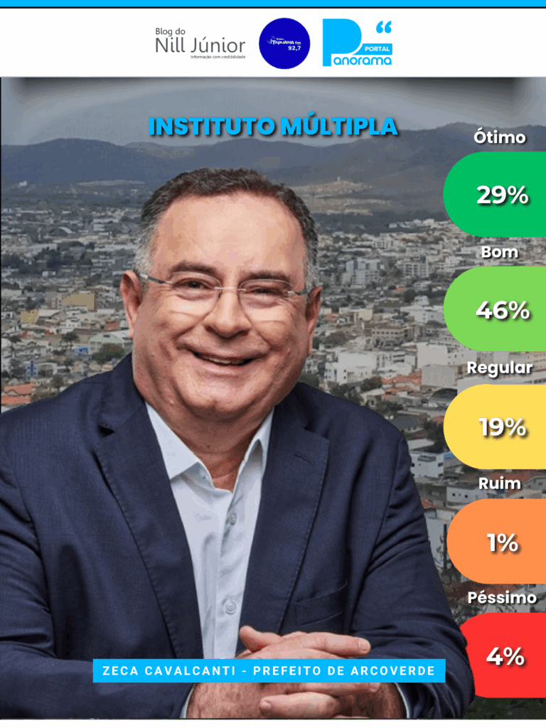 O prefeito de Arcoverde, Zeca Cavalcanti (Podemos), voltou a alcançar o maior índice de aprovação desde abril na avaliação de governo, conforme aponta levantamento realizado pelo Instituto Múltipla nos dias 1 e 2 de julho. Segundo a pesquisa, 89% da população aprova sua gestão nos primeiros seis meses de trabalho.