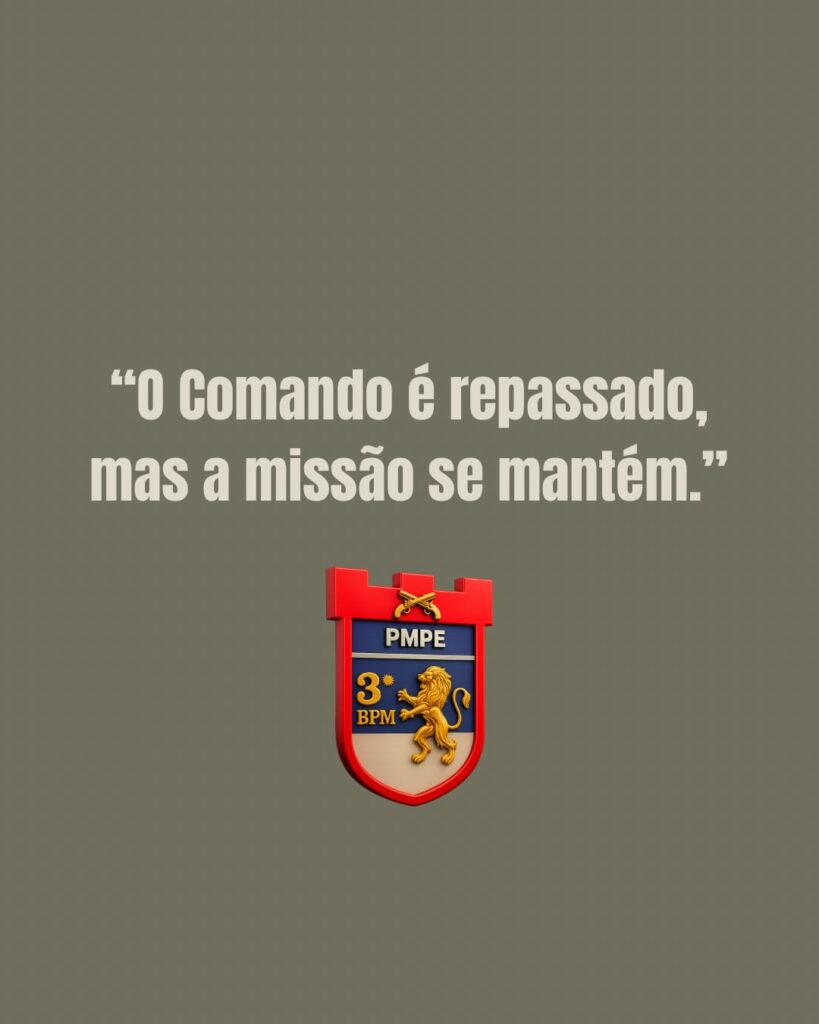 Na legenda, o batalhão enfatizou que o momento representa, ao mesmo tempo, transição e continuidade, uma vez que, embora haja mudança nos nomes que lideram a unidade, os objetivos permanecem os mesmos. “O comando é repassado, mas a missão continua”, diz o texto, reforçando o compromisso com a segurança da população.