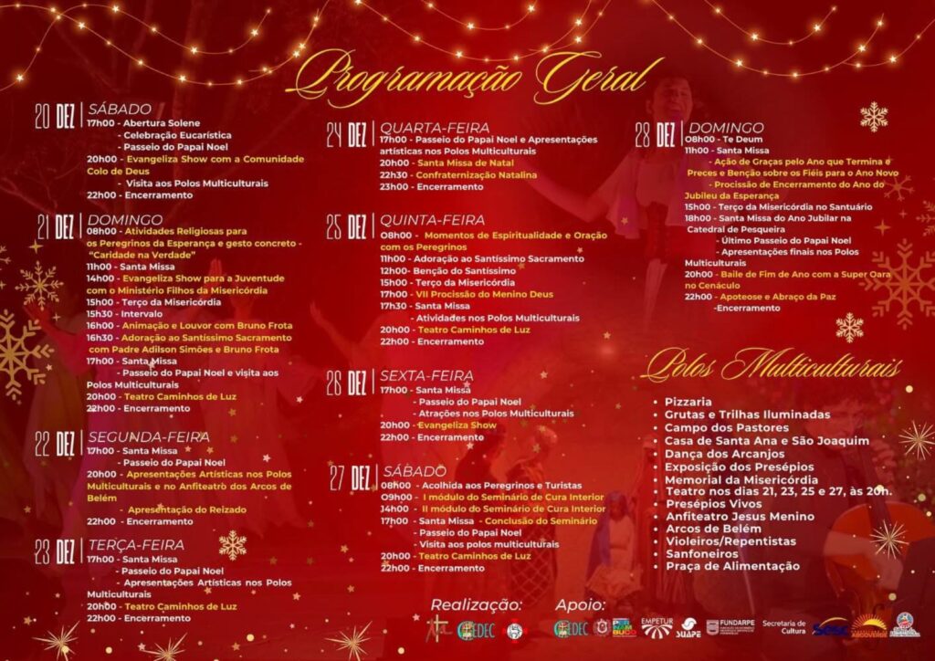 Além da programação religiosa, o evento contará com apresentações artísticas, encenações temáticas, bem como momentos dedicados à reflexão sobre o nascimento de Jesus. Desse forma, reforçando a proposta de unir fé, tradição, bem como convivência comunitária.