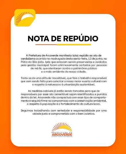 Ainda segundo a prefeitura, as medidas legais já estão em andamento para que os autores do crime sejam localizados e responsabilizados dentro dos termos da legislação vigente. A gestão afirmou, ainda, que Arcoverde não compactua com esse tipo de comportamento. Além disso, seguirá firme no compromisso com a preservação ambiental, o respeito à população e o fortalecimento da cultura local.