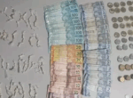 Além da droga, foram apreendidos R$ 915,25 em espécie, uma garrafa pet com moedas e cédulas. Assim como, dois celulares de procedência duvidosa.