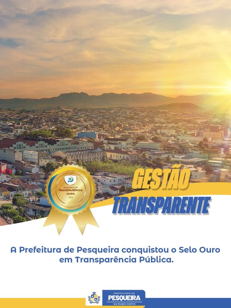 A Prefeitura de Pesqueira, no Agreste pernambucano, conquistou o Selo Ouro do Programa Nacional de Transparência Pública. Reconhecimento concedido a gestões que se destacam na disponibilização clara e acessível de informações sobre a administração pública. A avaliação foi realizada pelo Tribunal de Contas de Pernambuco (TCE-PE), em parceria com a Atricon, com base em critérios técnicos e rigorosos.