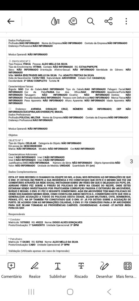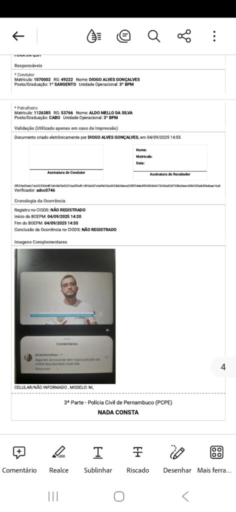 De acordo com o Boletim de Ocorrência nº 2025090414224441, a equipe da GT3000 recebeu informações do Núcleo de Inteligência do Sertão (NIS) sobre a autoria do comentário. Os policiais foram até a residência do suspeito e confirmaram que ele havia feito a postagem ofensiva. Na mensagem, o homem ironizava o trabalho da corporação e questionava a integridade dos militares.