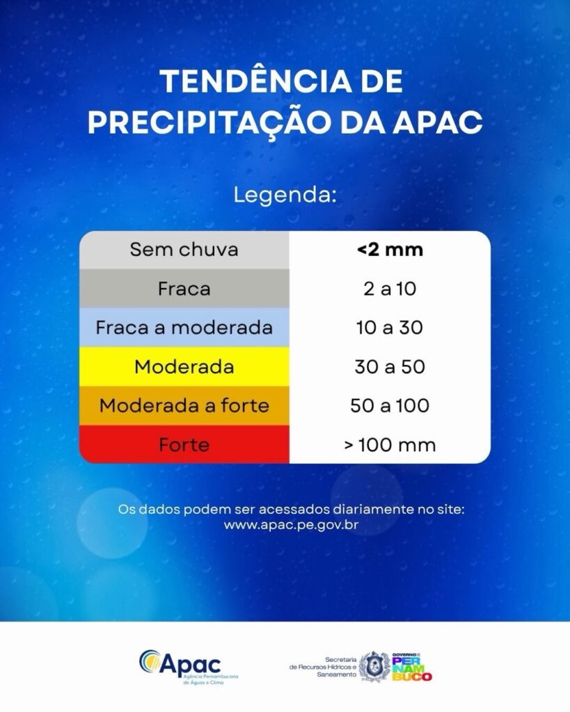 De acordo a Apac, o cenário climático segue influenciado por sistemas atmosféricos típicos desta época do ano, o que mantém maior instabilidade nas áreas litorâneas. Por fim, o órgão orienta a população a acompanhar os avisos atualizados e seguir as recomendações dos serviços de monitoramento.