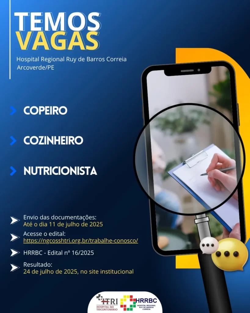 Enquanto os processos estão em andamento, a instituição reforça que os resultados serão divulgados no site institucional, garantindo transparência em todas as etapas. Assim, o HRRBC busca ampliar sua equipe para oferecer ainda mais qualidade e humanização no atendimento à população de Arcoverde e região.
