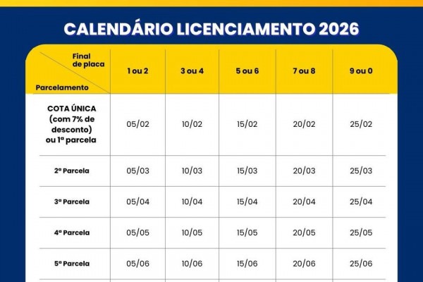 De acordo com o calendário, o IPVA 2026 poderá ser pago em até dez cotas mensais. No entanto, desde que o valor mínimo da parcela não seja inferior a R$ 54,78. A cobrança começa em fevereiro, com vencimentos a partir do dia 5, e segue até novembro. As datas variam conforme o final da placa do veículo. Assim, placas terminadas em 1 e 2 vencem em 5 de fevereiro; 3 e 4, no dia 10; 5 e 6, no dia 19; 7 e 8, no dia 20; e 9 e 0, no dia 25. Já os contribuintes que optarem pelo pagamento em cota única até o vencimento de fevereiro terão desconto de 7%.