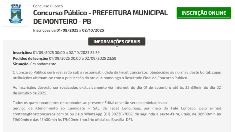 A Prefeitura de Monteiro, no Cariri paraibano, divulgou o Edital…