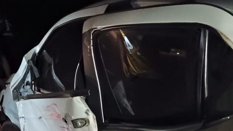 Caminhão bate em um carro na noite deste sábado (8),…