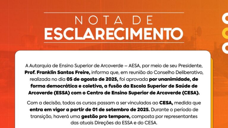 A Autarquia de Ensino Superior de Arcoverde (Aesa) se pronunciou…