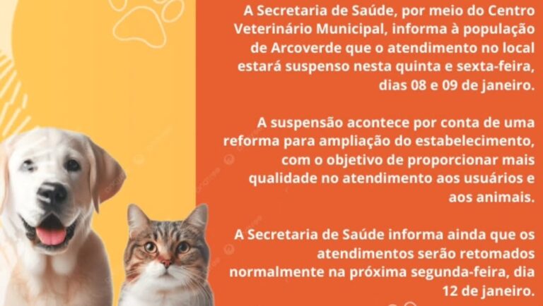 O Centro Veterinário Municipal de Arcoverde vai suspender temporariamente os…