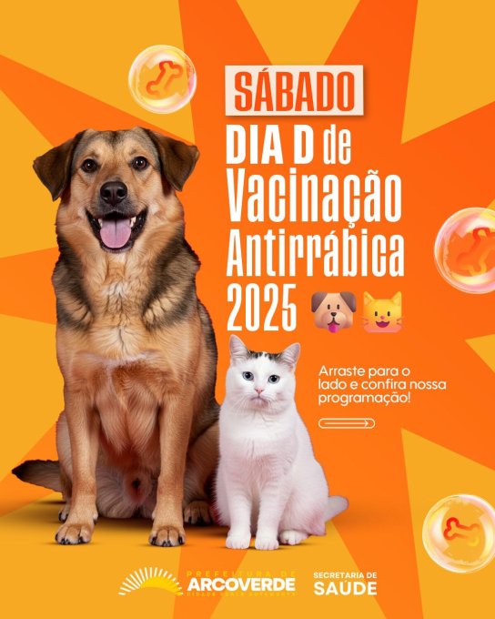 A Prefeitura de Arcoverde, por meio da Secretaria Municipal de Saúde, realiza neste sábado, 8 de novembro, o Dia D da Campanha de Vacinação Antirrábica 2025, com o objetivo de proteger cães e gatos contra a raiva e manter o município livre da doença. A ação acontecerá das 8h às 17h, em diversos pontos da cidade.
